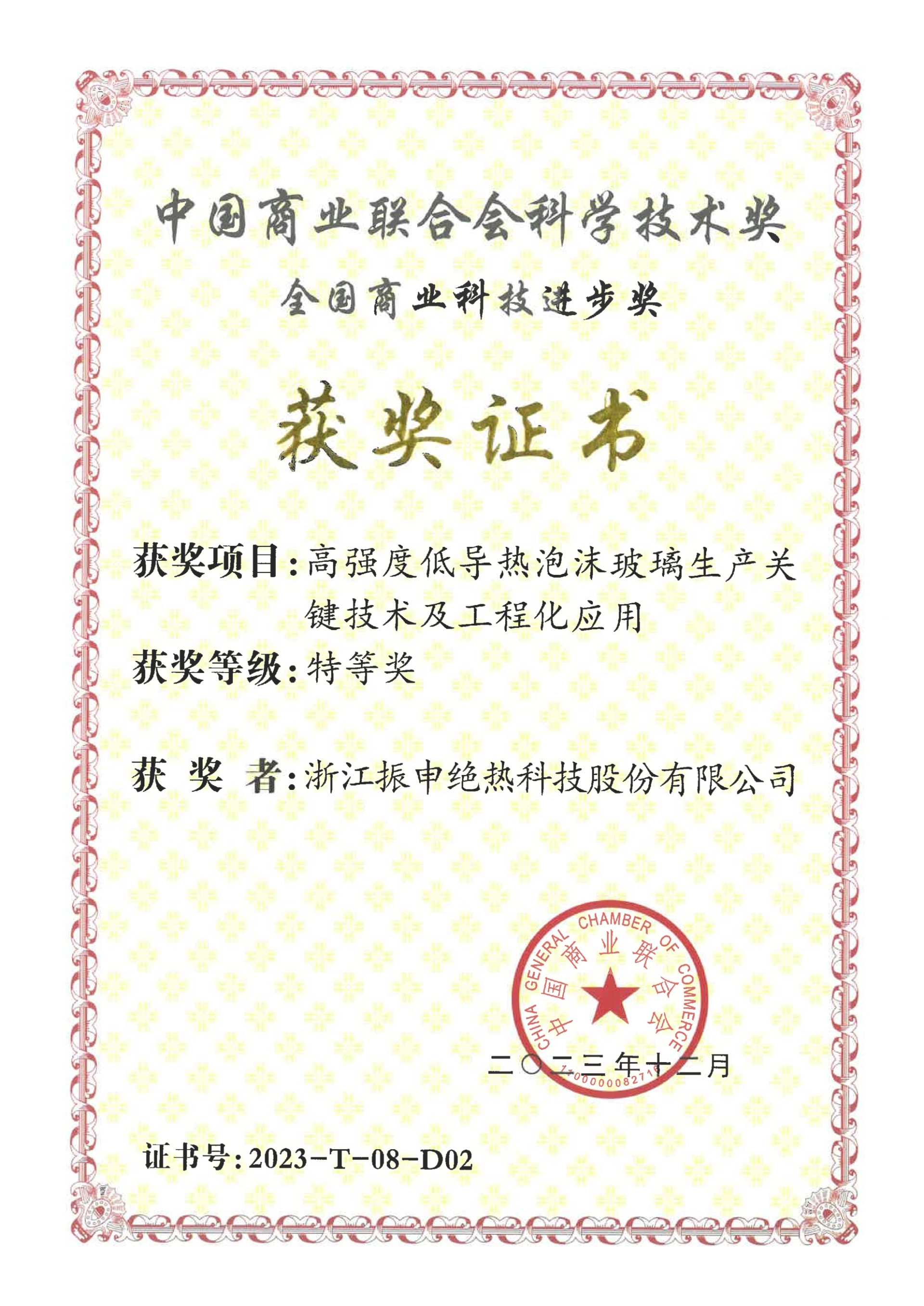 近日,由中國(guó)商業(yè)聯(lián)合會(huì)主辦的“2024年全國(guó)商業(yè)科技質(zhì)量大會(huì)”在北京召開。其中,我公司與浙江理工大學(xué)、嘉興學(xué)院、中國(guó)地質(zhì)大學(xué)(武漢)、浙江大學(xué)共同研究的“高強(qiáng)度低導(dǎo)熱泡沫玻璃生產(chǎn)及工程化應(yīng)用”項(xiàng)目榮獲全國(guó)商業(yè)科技進(jìn)步獎(jiǎng)“特等獎(jiǎng)”。