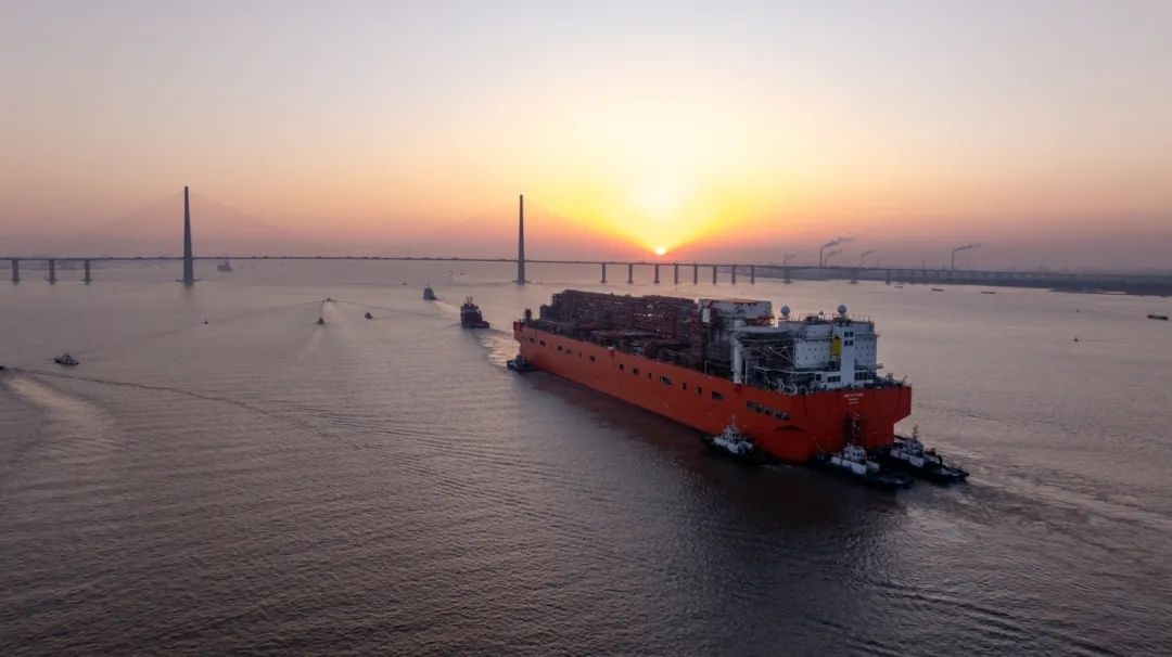近日,我國首座大型浮式天然氣液化裝置出江,705米拖帶船隊(duì)長(zhǎng)度創(chuàng)長(zhǎng)江歷史之最。在海事部門10艘海巡艇的接力維護(hù)下,由惠生清潔能源建造的我國首座大型浮式天然氣液化裝置“NGUYA FLNG”輪順利離開長(zhǎng)江江蘇段,前往舟山船廠碼頭進(jìn)行后續(xù)舾裝作業(yè)。